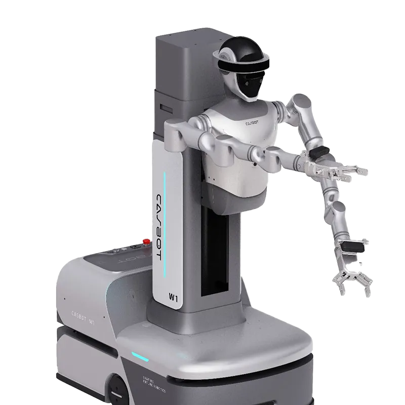 CASBOT W1 is a wheeled humanoid robot with dual 7-DoF arms, vertical lift, and AI perception for logistics, manufacturing, retail, inspection, and research tasks.