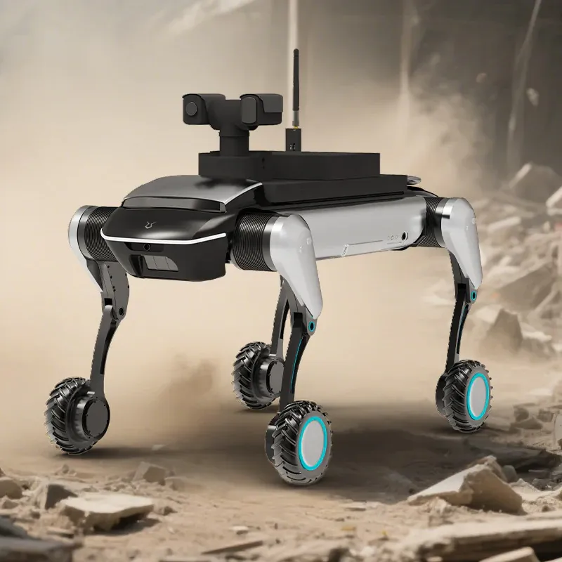 Rugged AI-enabled four-legged robot capable of outdoor exploration, load transport, and autonomous navigation in unstructured terrain. Designed for multi-scenario use including camping support, logistics tasks, and patrol functions