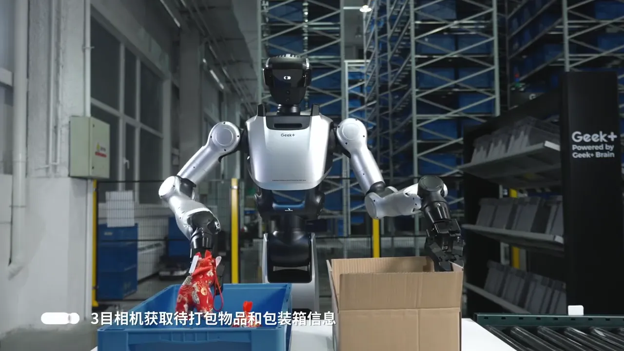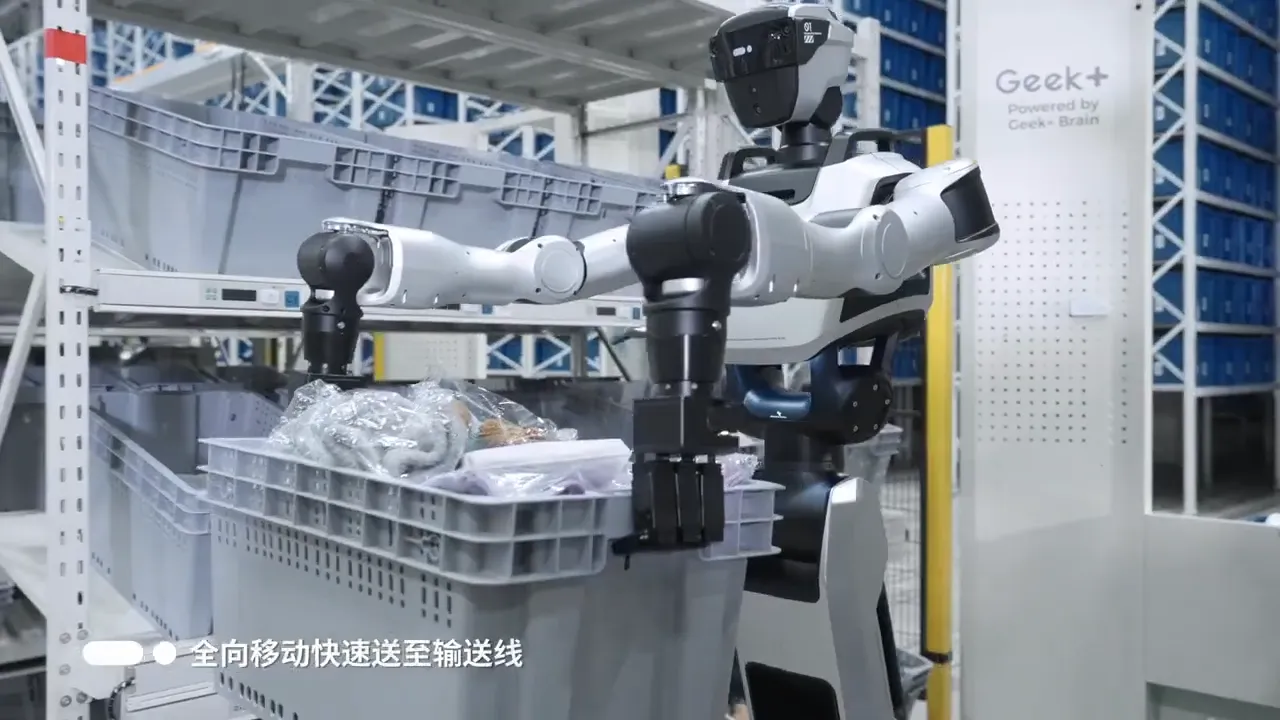 Gino 1 also includes a wheeled omnidirectional base for efficient movement across warehouse floors, allowing it to travel quickly between picking stations and storage areas. With a battery system capable of extended operation and wireless fast charging technology, the robot is designed for continuous industrial workflows and scalable deployment alongside Geek+’s existing AMR fleets and warehouse management systems.