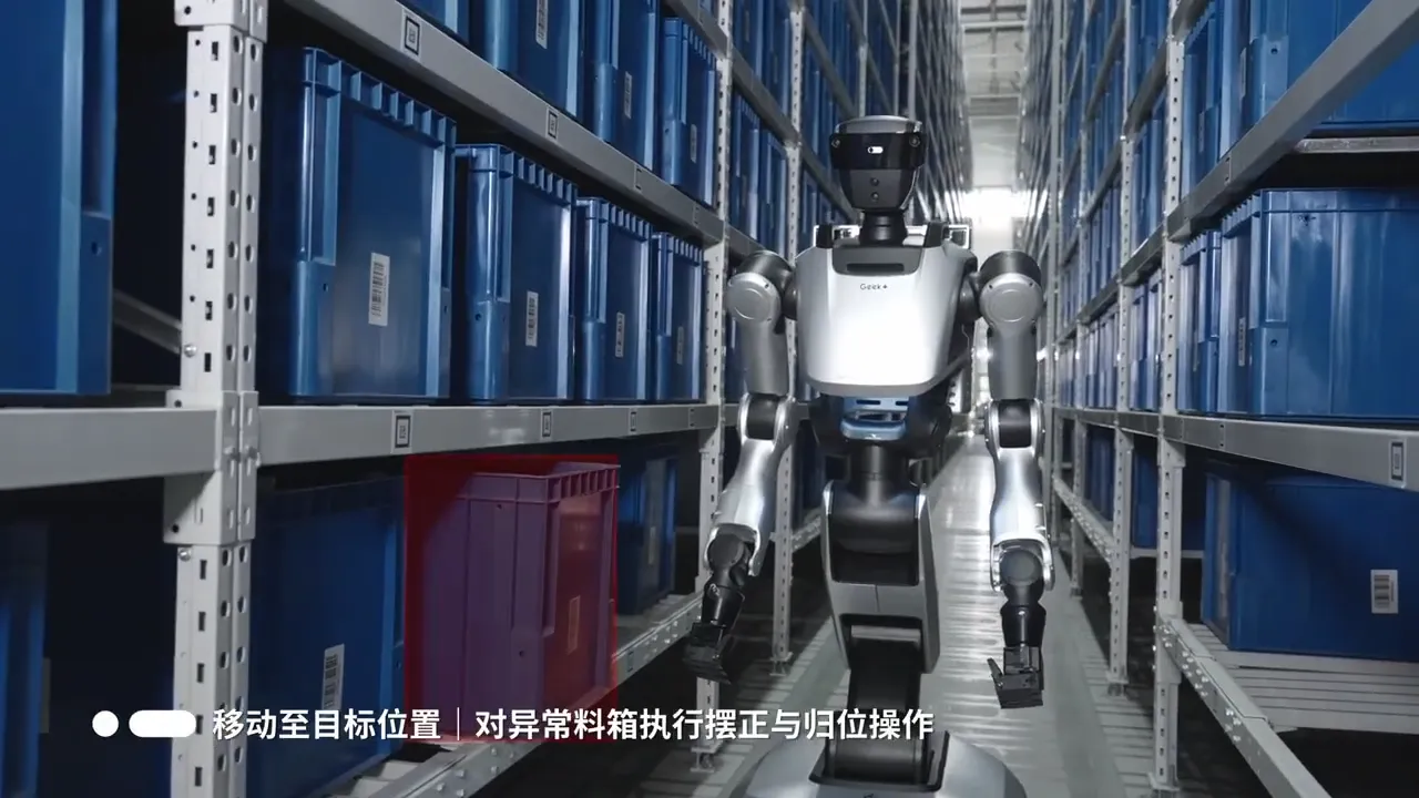 Gino 1 is a warehouse-native humanoid robot developed by Geek+ to automate manual operations within logistics facilities. Unlike general-purpose humanoid robots, the system is purpose-built for warehouse environments and trained on large datasets derived from real-world logistics operations. Its embodied intelligence system, Geek+ Brain, uses a VLA architecture combined with simulation training to coordinate perception, planning, and manipulation tasks.