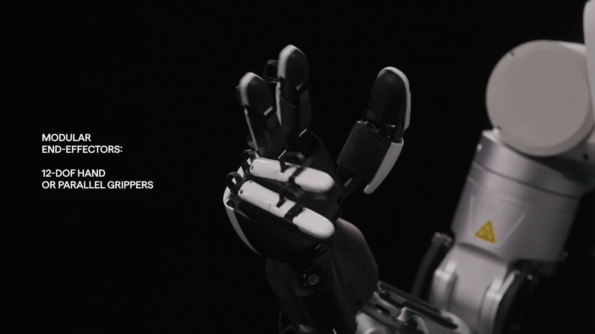 Modularity is a key feature. The robot supports interchangeable end-effectors, including a highly advanced 12-DOF 5-finger hand for intricate, delicate tasks, or a simpler, faster 1-DOF parallel gripper with a pad for robust, repetitive handling. - Environmental Preparedness: