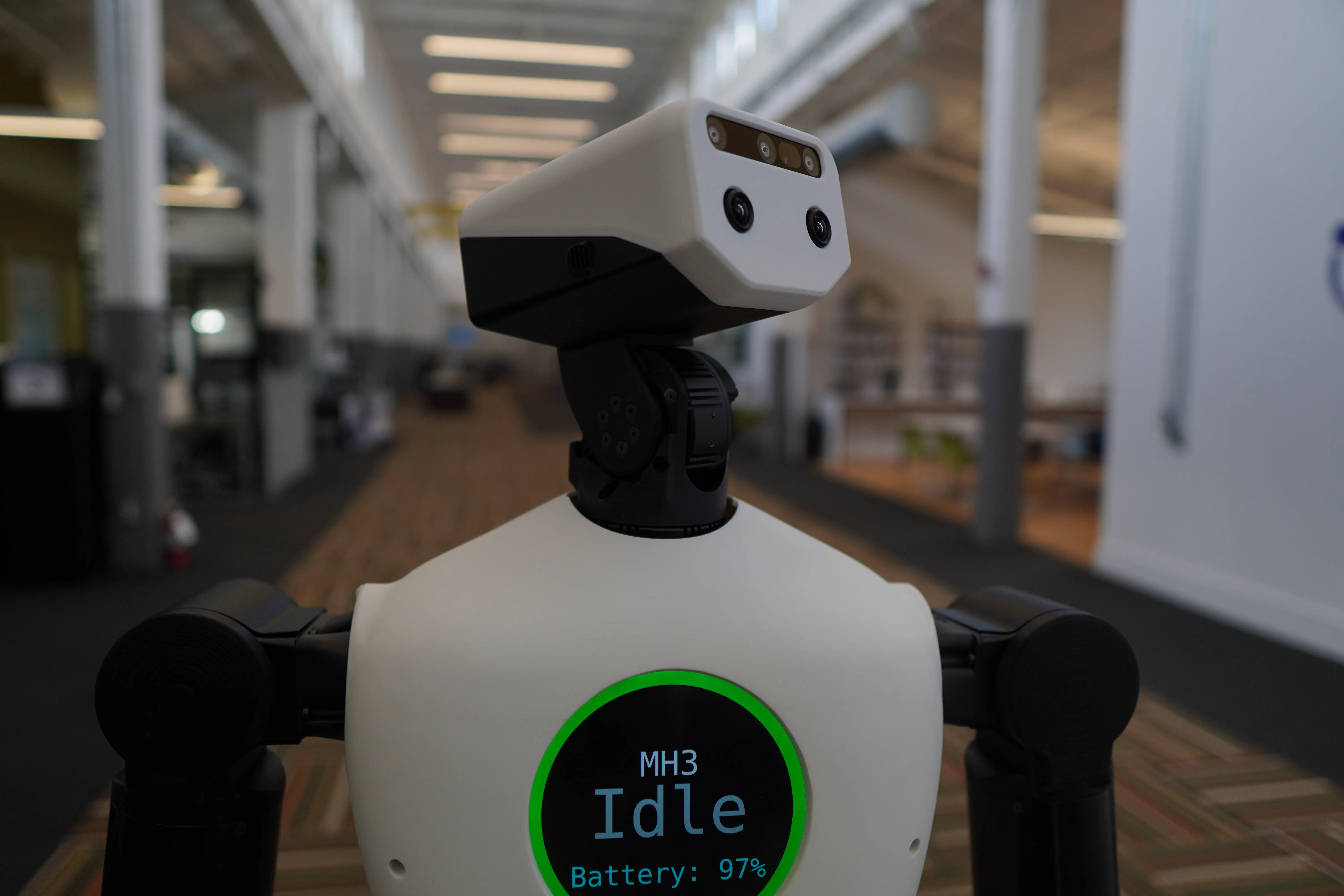MH3 is a humanoid robot equipped with two arms capable of exerting up to 27 kg of force combined (30 lbs per arm). It integrates advanced sensors and actuators to provide precise control and safe interaction in complex environments. The robot is designed to work alongside humans, performing tasks that require careful manipulation and strength within specified limits.