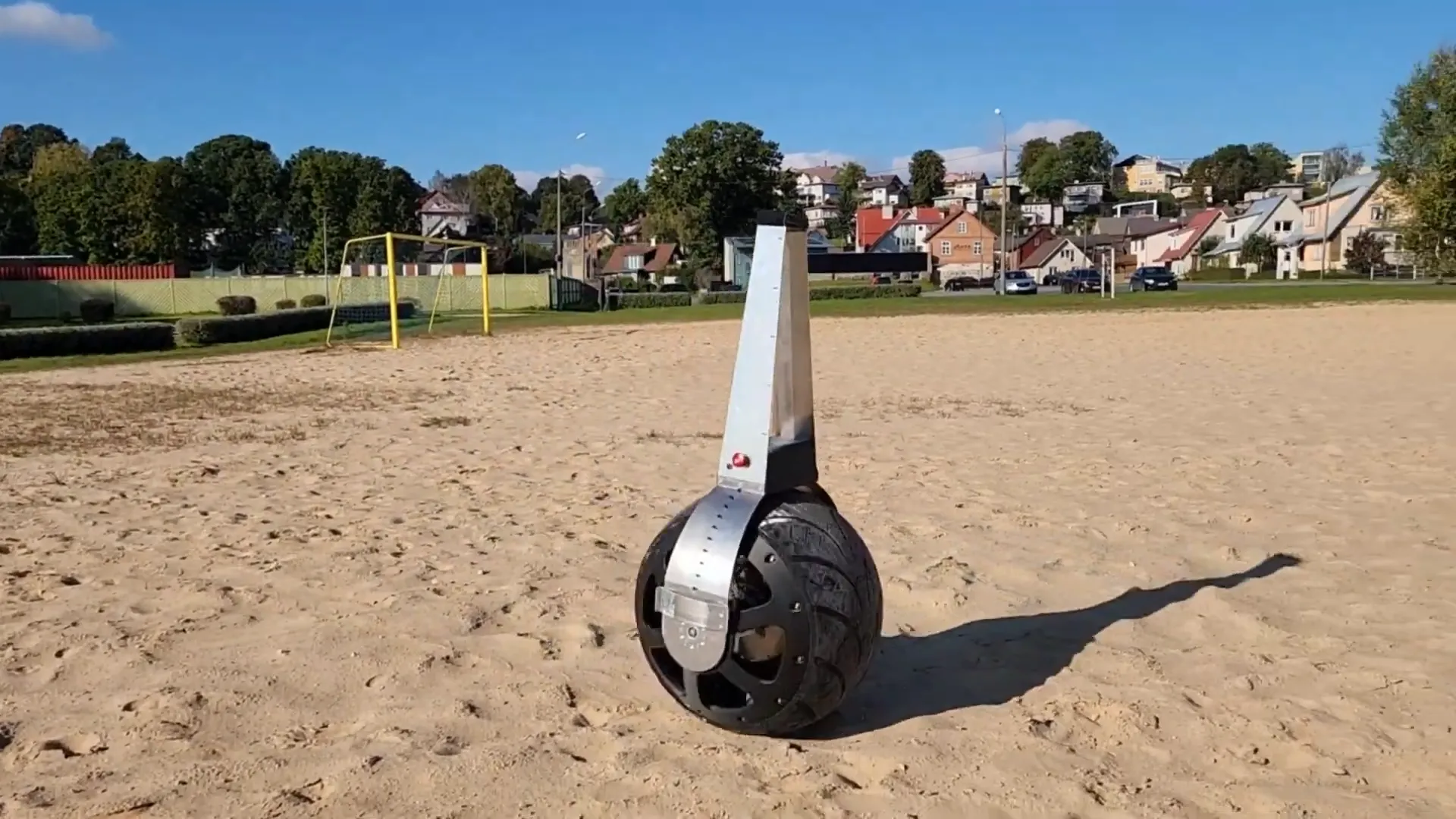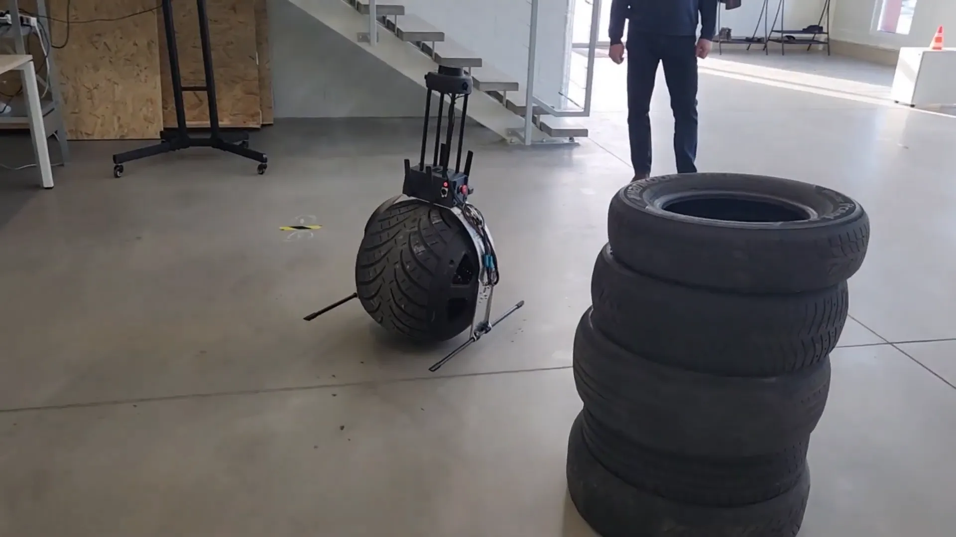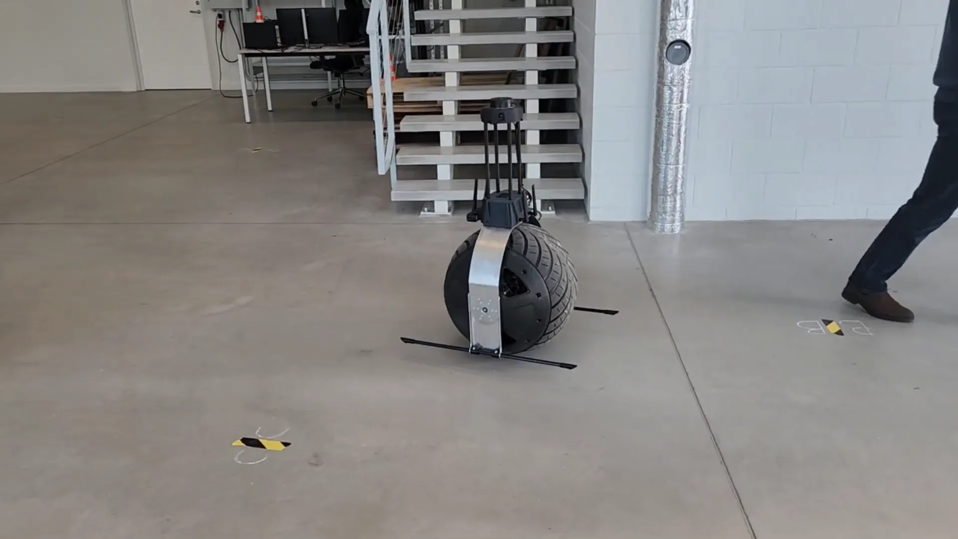 Rollo is a unique mobile security robot built around a monowheel architecture, setting it apart from conventional wheeled or legged robots. The system uses proprietary gyroscopic stabilization combined with sensor fusion and balance-control algorithms to solve the long-standing challenge of maintaining stability on a single wheel. This enables a compact and narrow profile, allowing the robot to maneuver efficiently through tight spaces such as industrial corridors and urban pathways.